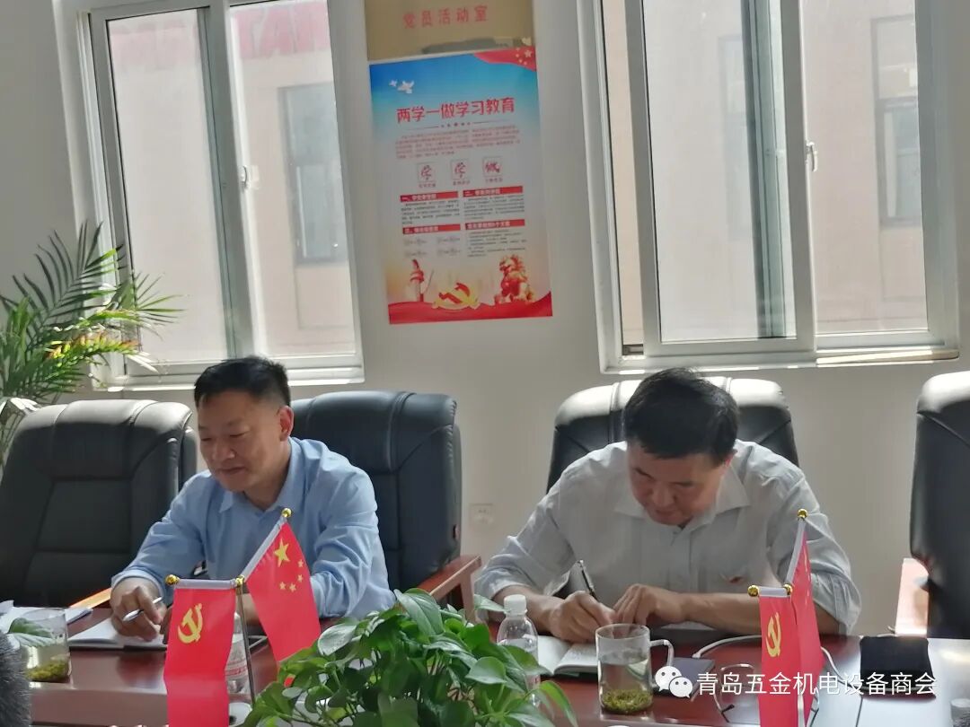 5月28日下午,青岛市工商联副主席张宣付、市非公党建工作处二级调研员李伟一行两人莅临青岛市五金机电设备商会考察调研商会党建工作。